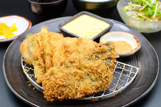 旬鰆と春野菜のフライ定食 カレー塩とオレンジ風味のタルタル添え