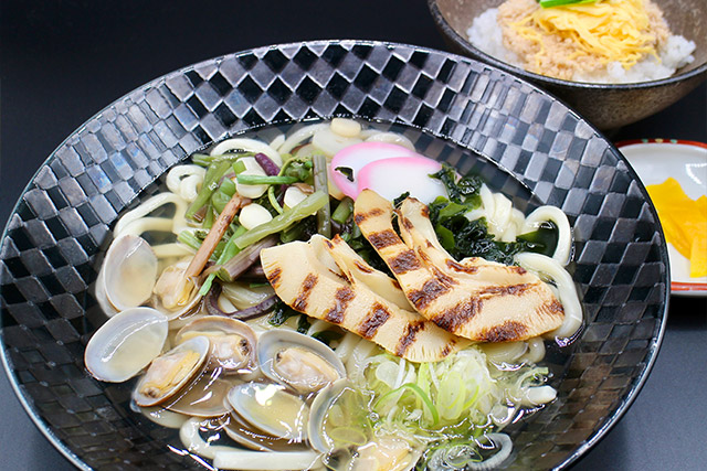 あさりと筍、山菜うどん・そば 鶏そぼろ丼セット