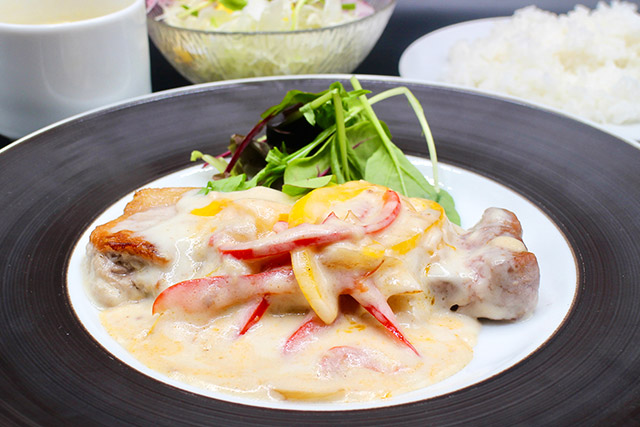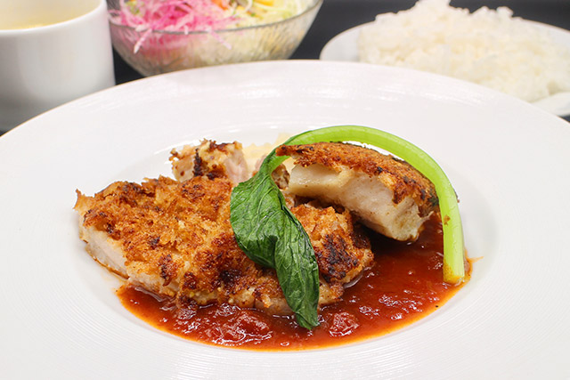 真鱈のパン粉焼きとチキンステーキトマトソース
